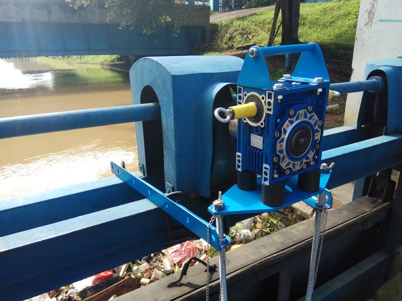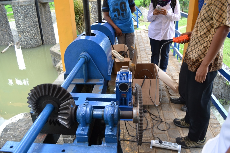 Beberapa permasalahan yang mendasari pelaksanaan kegiatan ini adalah jumlah petugas pintu dalam melayani operasi sangat terbatas bila dibandingkan jumlah pintu air yang harus dioperasikan, dan pengoperasian pintu air terkendala dengan ketersediaan peralatan elektromekanis yang mampu meringankan operasi. Dan kegiatan ini bertujuan untuk mengembangkan dan menguji alat bantu portabel pembuka pintu air untuk mendukung Teknologi Terapan Pengembangan Infrastruktur Jaringan Irigasi. Uji coba pembuatan dilakukan di Balai Litbang Irigasi dan uji coba penerapan dilakukan di Daerah Irigasi Jatiluhur, Seksi Telaga Sari, Karawang pada Tahun 2017.