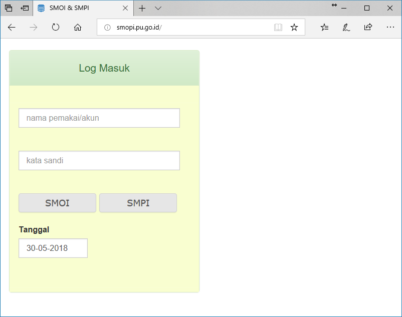 Aplikasi ini dapat diakses melalui website dengan alamat smoi.pusair-pu.go.id atau smoi.irigasi.net. Untuk mengakomodir aplikasi dalam skala luas, saat ini sedang dilakukan migrasi ke server Pusat Data dan Informasi Kementerian PUPR dengan alamat domain smopi.pu.go.id.